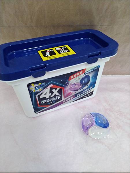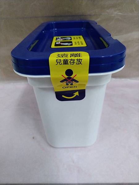 洗衣盒貼心的護兒蓋設計,開關需先按再往上推才能打開,盒子上也有清楚標示地警語,可以避免家中年紀較小的孩子因打開而有誤食的危險。![]()