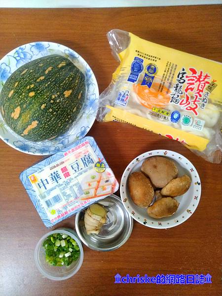 材料:薑末、蔥末、香菇、南瓜、豆腐、讚岐烏龍麵