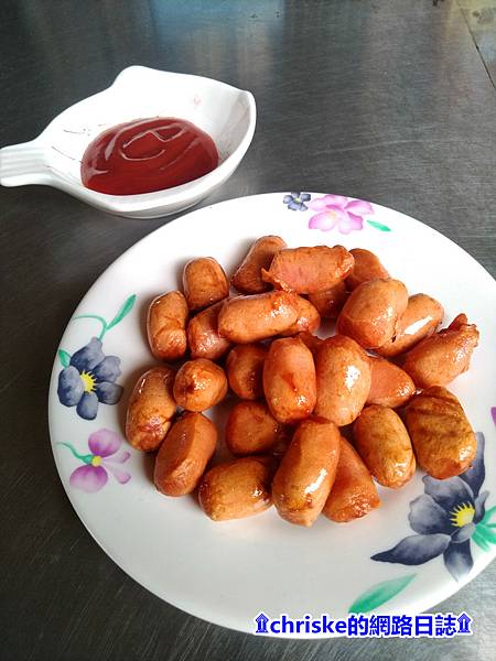 吃起來還保有肉的彈性,沾醬是番茄醬,裝蕃茄醬的造型碟子很可愛耶!